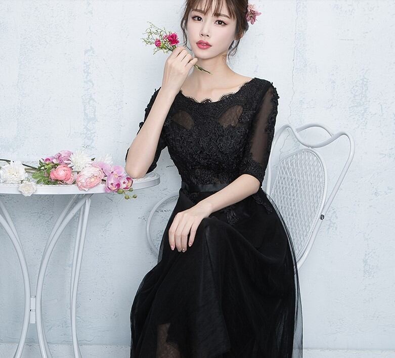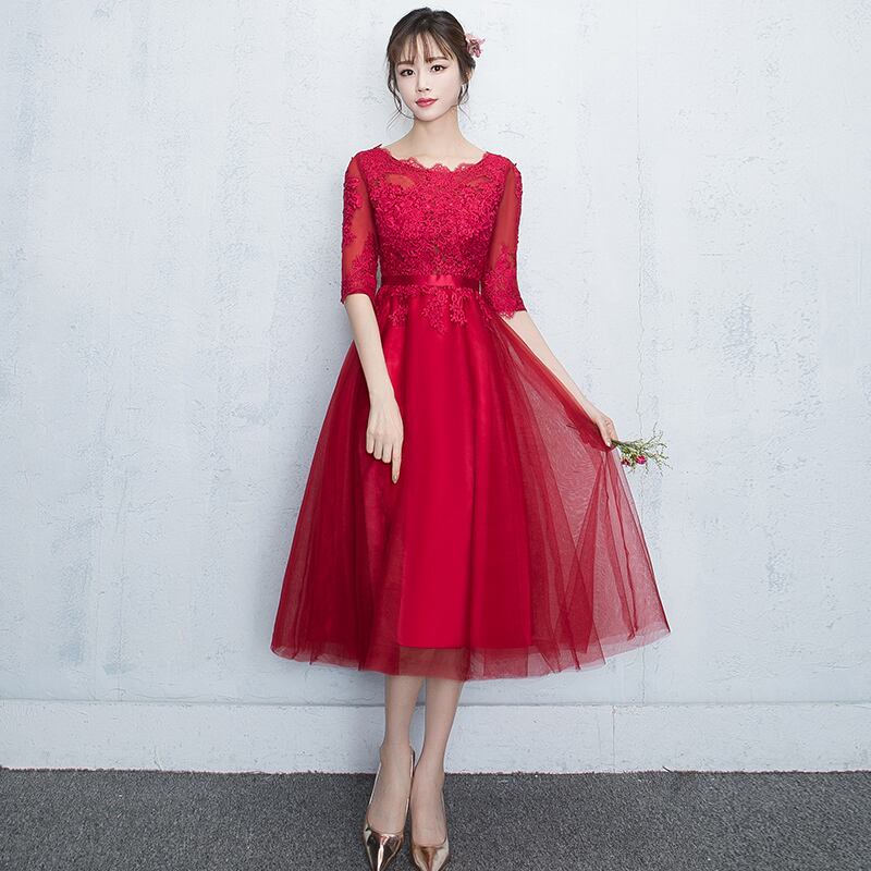 フォーマルシーンに ミディ丈レースドレス 透け感 結婚式 披露宴 パーティー 謝恩会 H1014