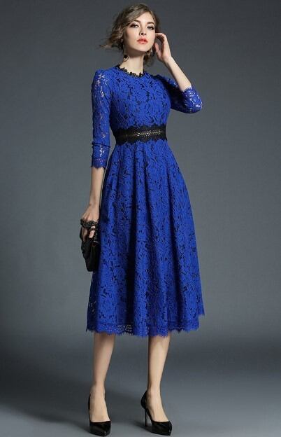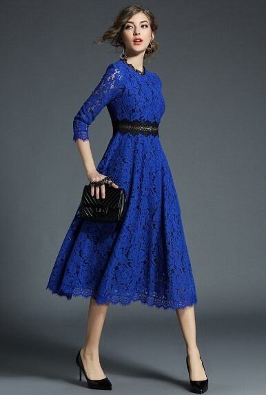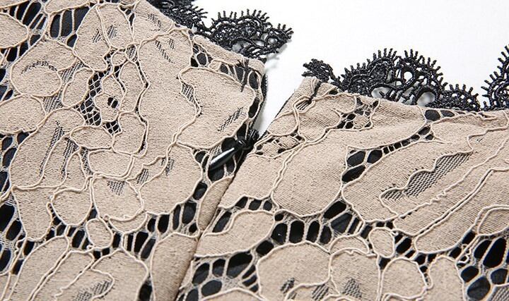 ブラックカラーをポイントに使ったオシャレなバイカラーのレースドレスです。