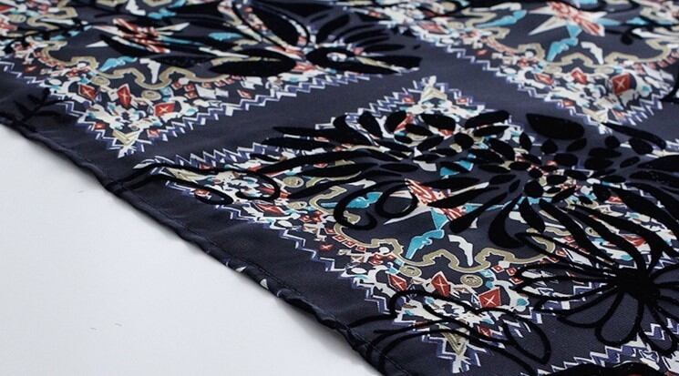 レトロモダン柄ブラウスとインナーキャミ、ボリュームのあるワイドパンツの3点セットです。
