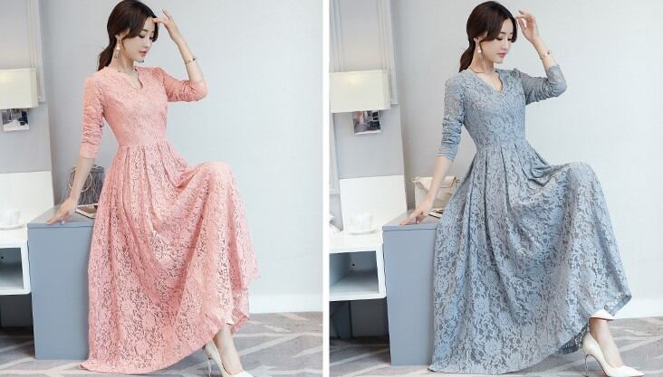 定番ドレス☆総レースマキシ丈ドレス ワンピース クロスVネック エレガント 結婚式 二次会 パーティー H1024