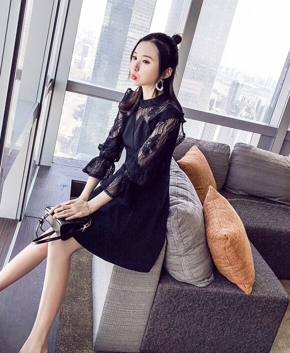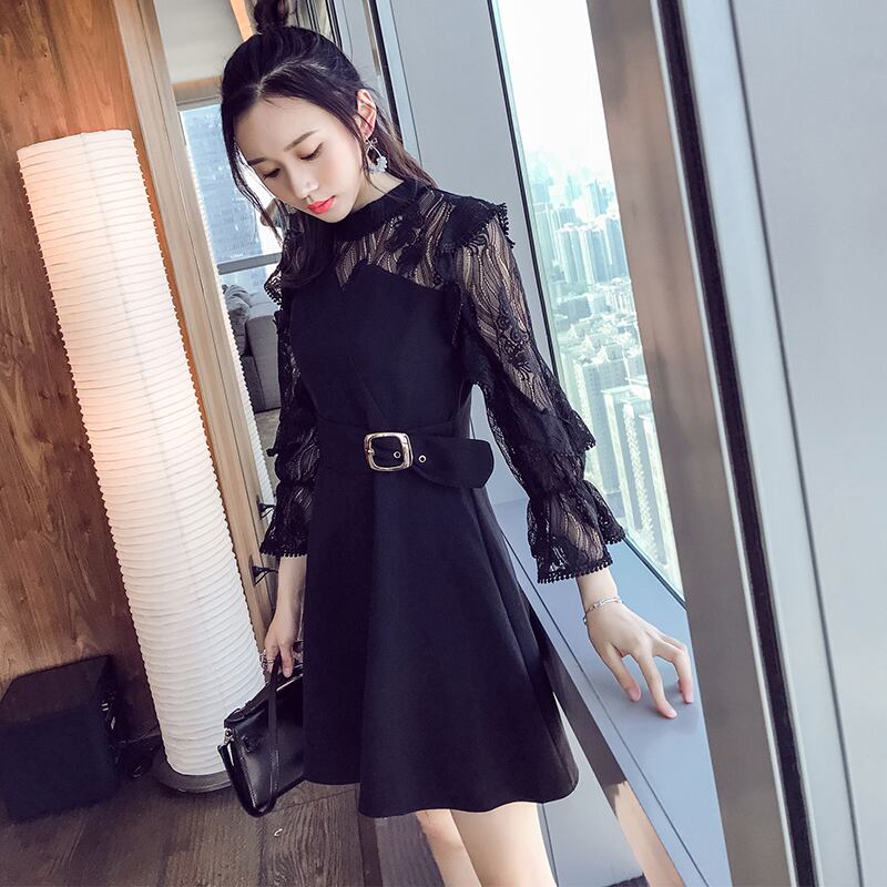 華やかキュート♡レースドッキングドレス フリル ウエストベルト スタンドカラー 結婚式 披露宴 二次会 パーティー 秋冬 H1033