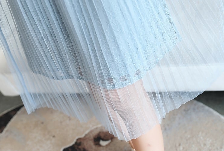 スカート部分はプリーツのメッシュレースが重なって