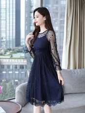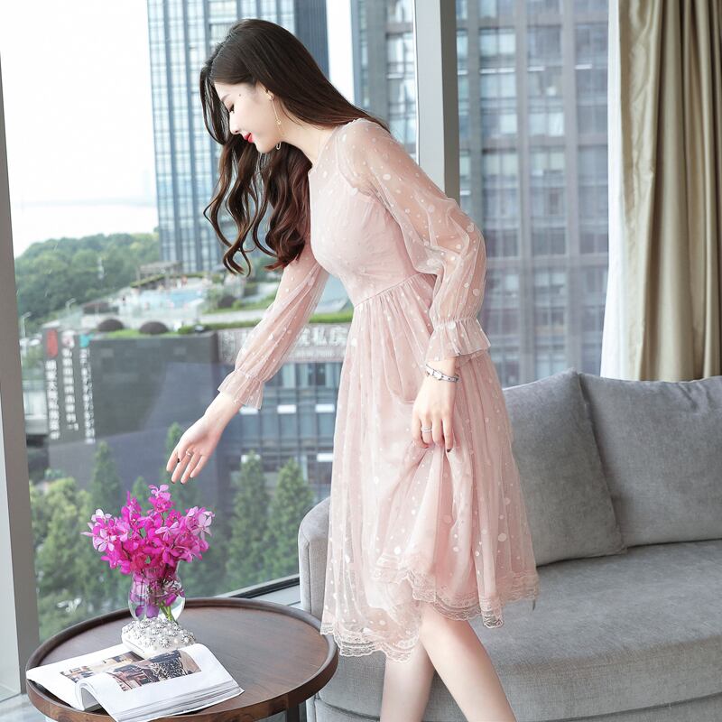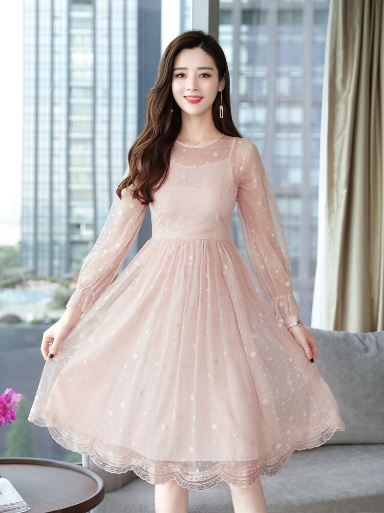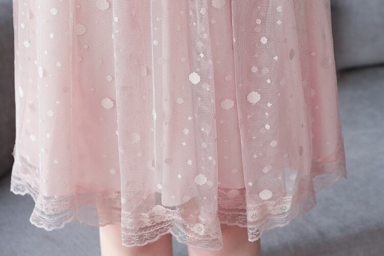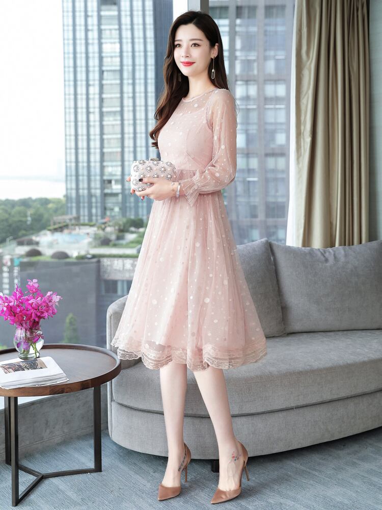 ランダムドット柄レースドレス ミディ丈 シアー感 エレガント ガーリー 結婚式 披露宴 パーティー イベント H1045