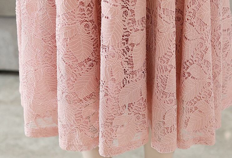 たっぷりのドレープが美しい総レースのミディ丈ドレスです。