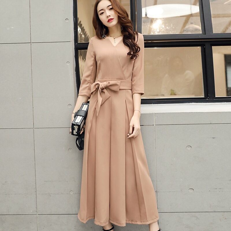 クールにキマる Vネック ワイドレッグオールインワン ハイウエスト 7分袖 ウエストリボン バックジップ マニッシュ 大人女子 パーティー お食事 二次会 イベント H1089