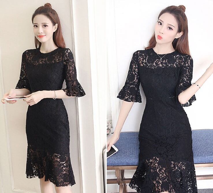 総レースフリルドレス ベルスリーブ ひざ丈 スリム 透け感 エレガント 華やか キュート かわいい 結婚式 二次会 パーティー イベント H1098