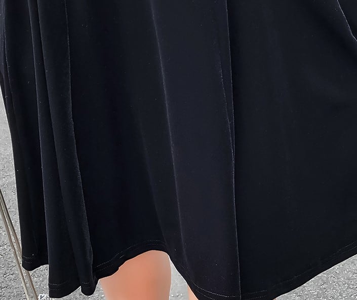 人気のベルベット風ブラックドレスです。