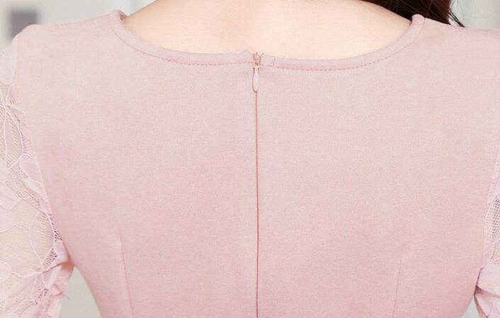スエード風レース切替ミニドレス リボン Aライン ウエストシェイプ 秋冬 キュート シック H1101