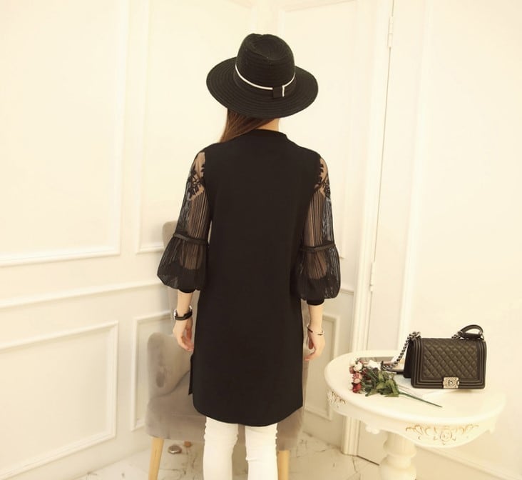 袖がレース切替になっていてエレガントな雰囲気。