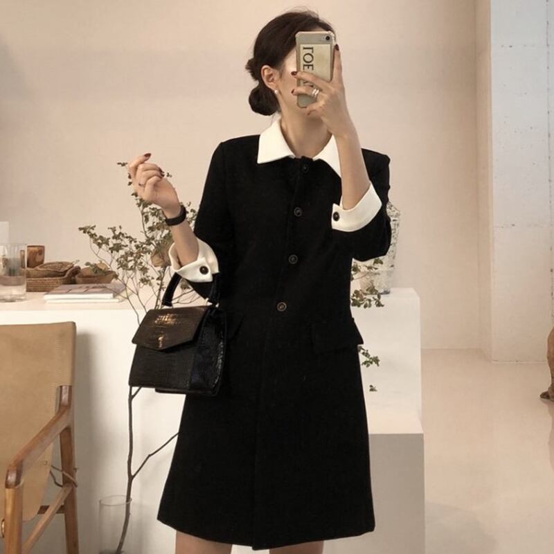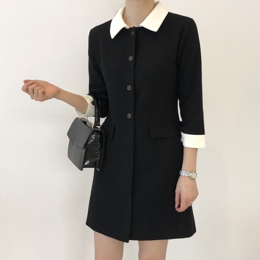 クラシカル♡バイカラーミニワンピース ブラックワンピース ジャケット風 レトロ 7分袖 マニッシュ お出掛け パーティー お呼ばれ H1109
