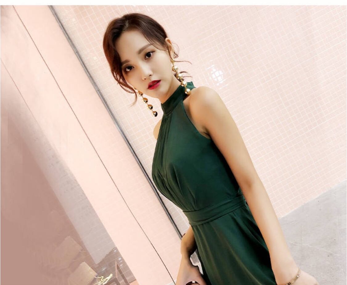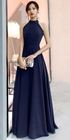 ホルターネックで首元がスッキリ綺麗に見えるロングドレスです。