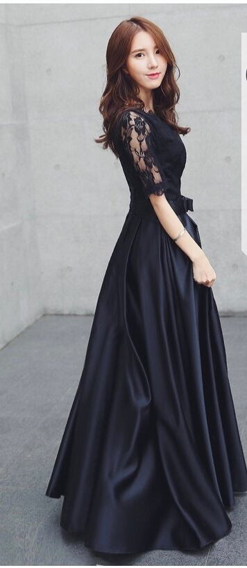 X-10051 パーティードレス 花レース ロングドレス モチーフ レース 5分袖 大人 人気商品 夏 春 秋 結婚式 エレガント ウエストリボン マキシ丈