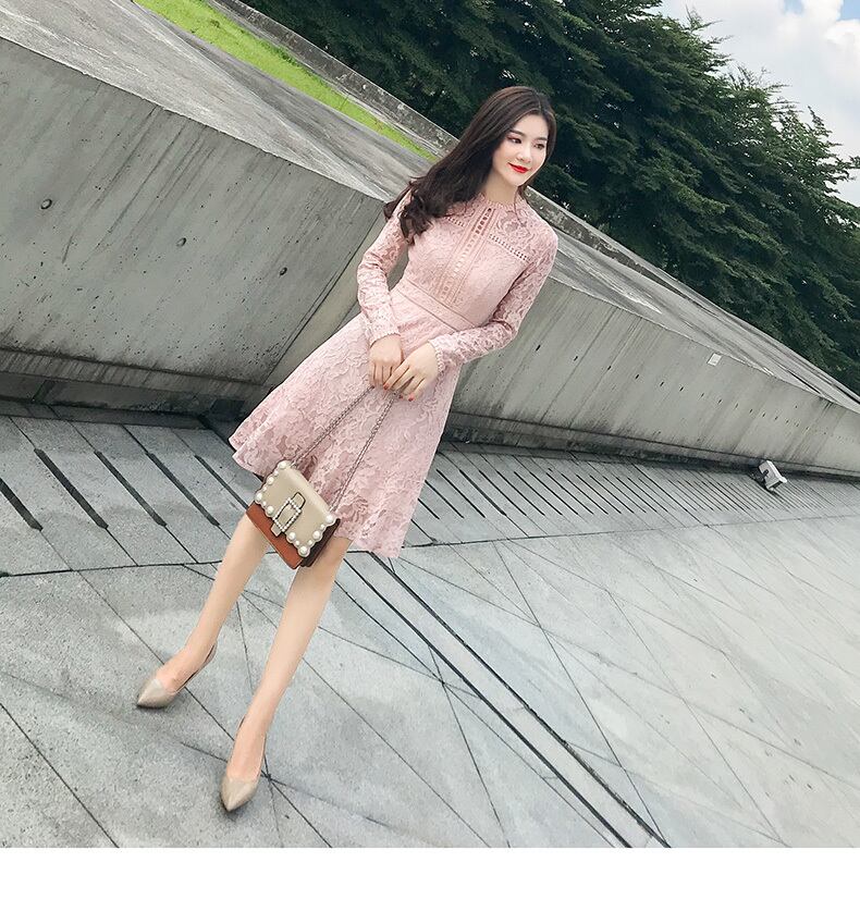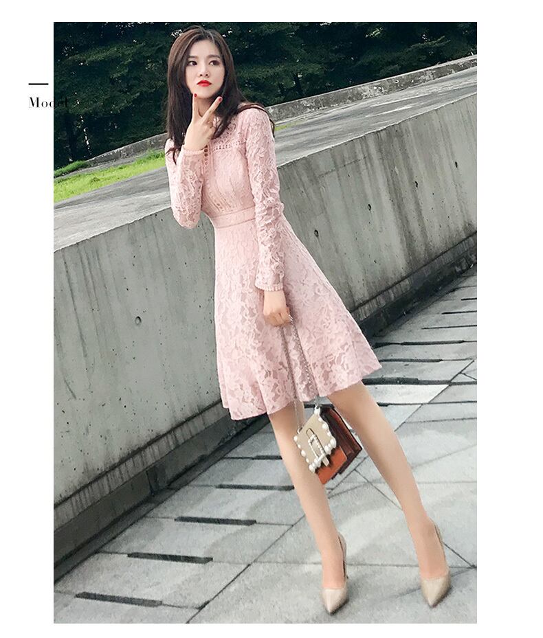 X-10054 レース フレア 長袖 ひざ丈 上品 エレガント フェミニン 可愛い 結婚式 お呼ばれ 夏 秋 春 シースルー
