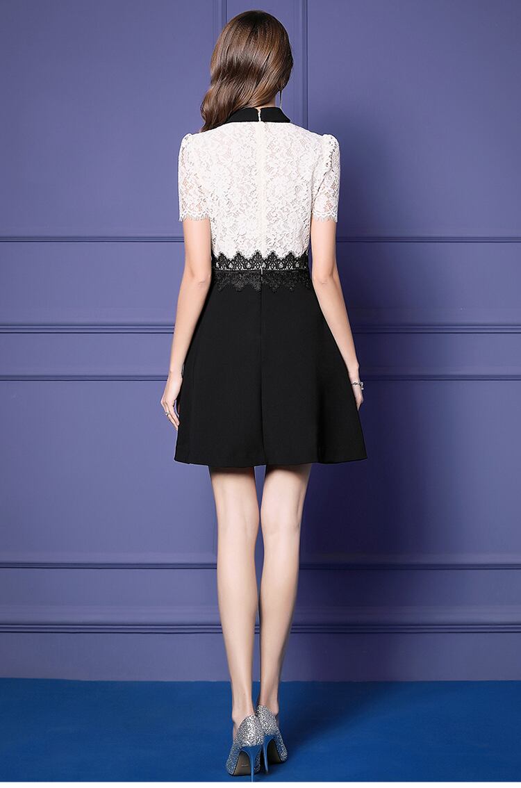 X-10073 ハイネック レース 刺繍 フレア ハイウエスト 半袖 ショート丈 夏 結婚式 パーティ お呼ばれ エレガント 大人可愛い カラー