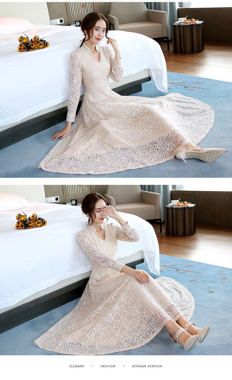 X-10077 Vネック フレア レース 総レース 長袖 ロング丈 夏 上品 シースルー 結婚式 パーティ お呼ばれ 上品 エレガント 大人 ハイウエスト 5分袖 ミモレ丈 夏 結婚式 お呼ばれ