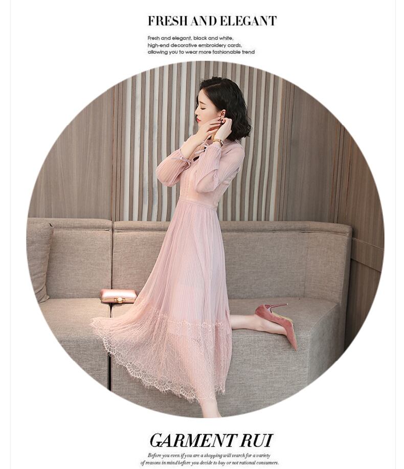 X-10078 シフォンドレス ハイネック レース プリーツ フレア ハイウエスト 長袖 ミモレ丈 ロング丈 夏 結婚式 パーティ お呼ばれ エレガント 大人可愛い