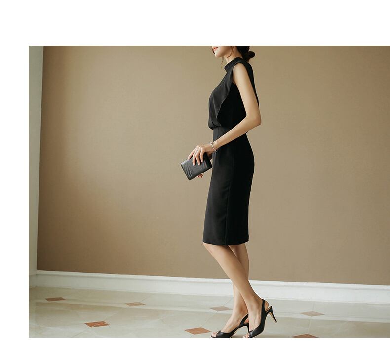 X-10087 シフォン ボレロひざ丈 タイト ミディアム丈 無地 夏 結婚式 ブラック パーティー お呼ばれ 上品 エレガント 大人 シースルー