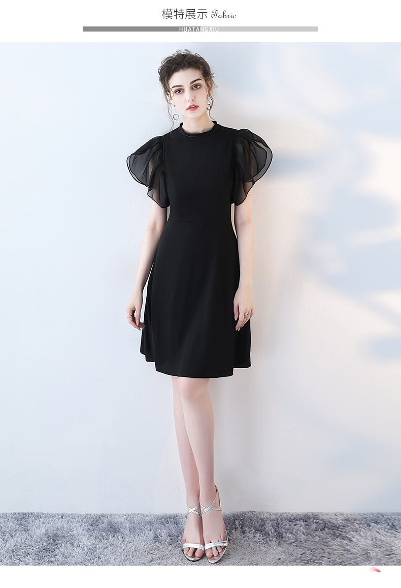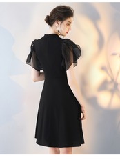 X-10100 フレアスリーブ フリル袖 ひざ丈ドレス ハイネック フレア シンプル ブラック 半袖 夏 結婚式 パーティー お呼ばれ 上品 エレガント 大人可愛い シースルー