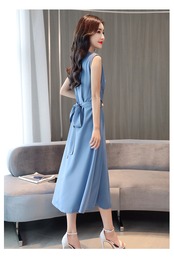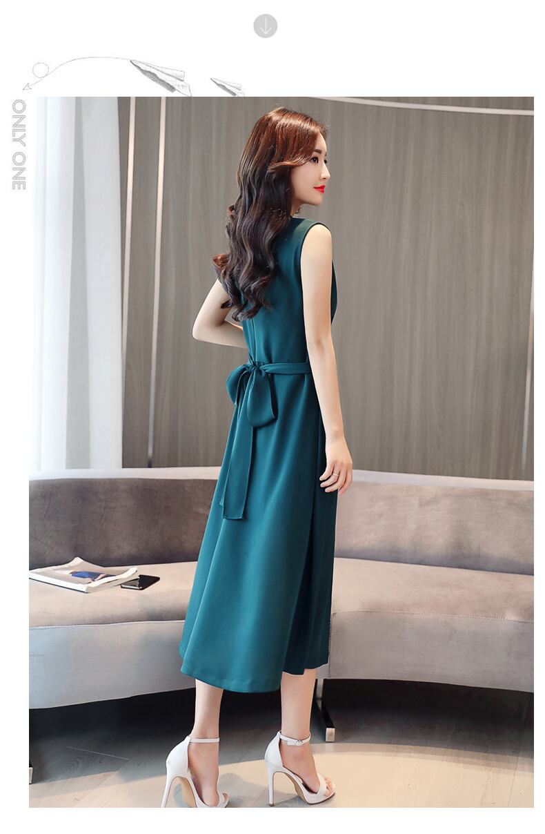 X-10103 バックリボン リボン フレア ミモレ丈 ドレス Vネック ノースリーブ シンプル 夏 結婚式 パーティー お呼ばれ 上品 エレガント 大人可愛い シースルー