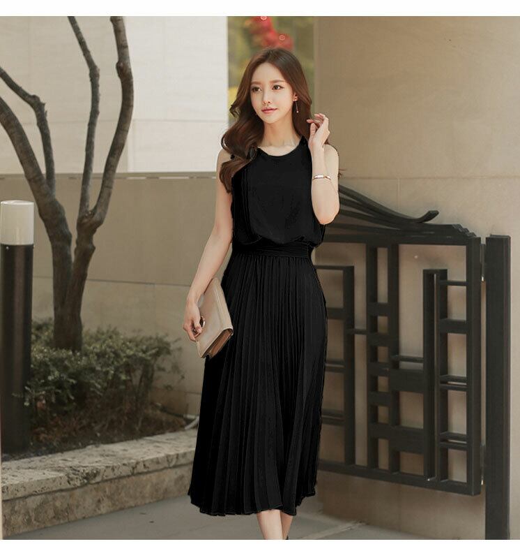 X-10113ミモレ丈ドレス プリーツ シフォン バックリボン リボン フレア ノースリーブ 夏 結婚式 パーティー お呼ばれ 上品 エレガント 大人可愛い シースルー