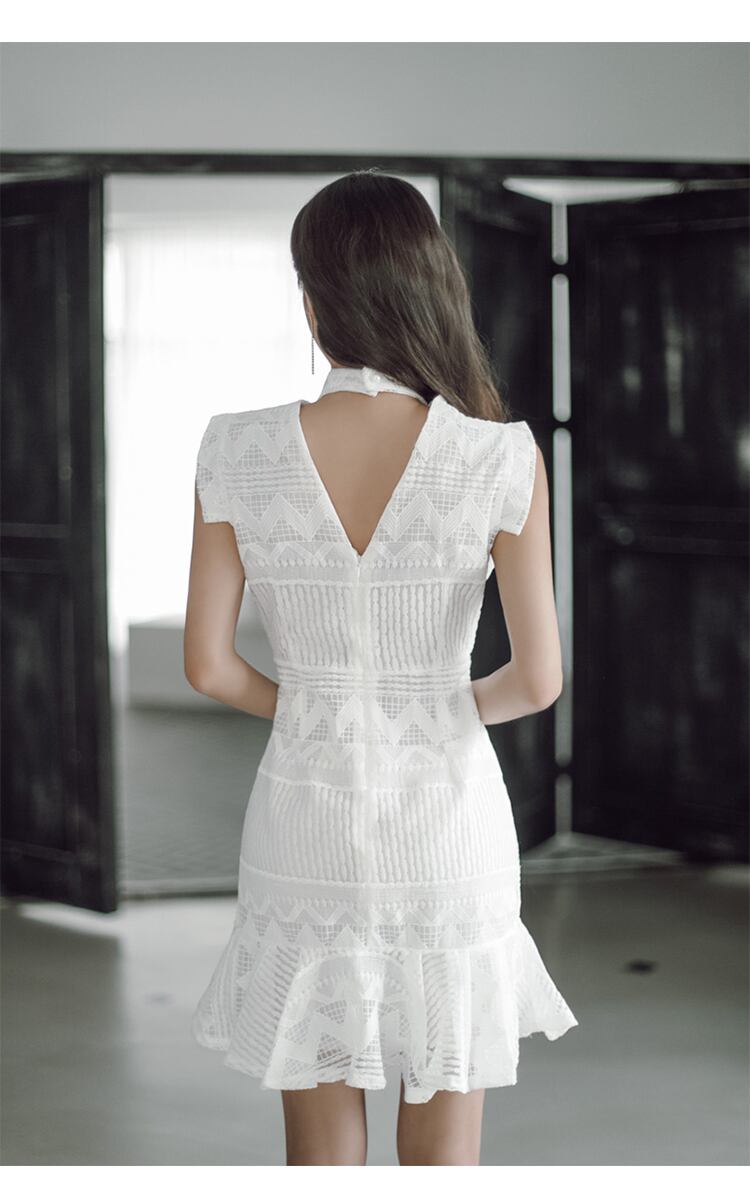 X-10117 ミニ丈ドレス フリル ノースリーブ ハイネック タイト 夏 パーティー お呼ばれ 上品 エレガント 大人可愛い