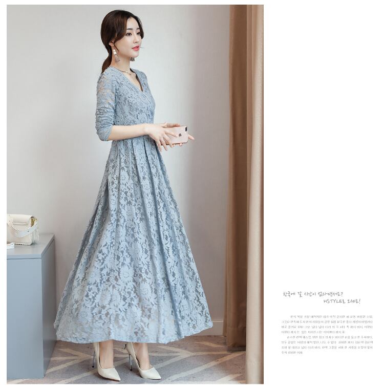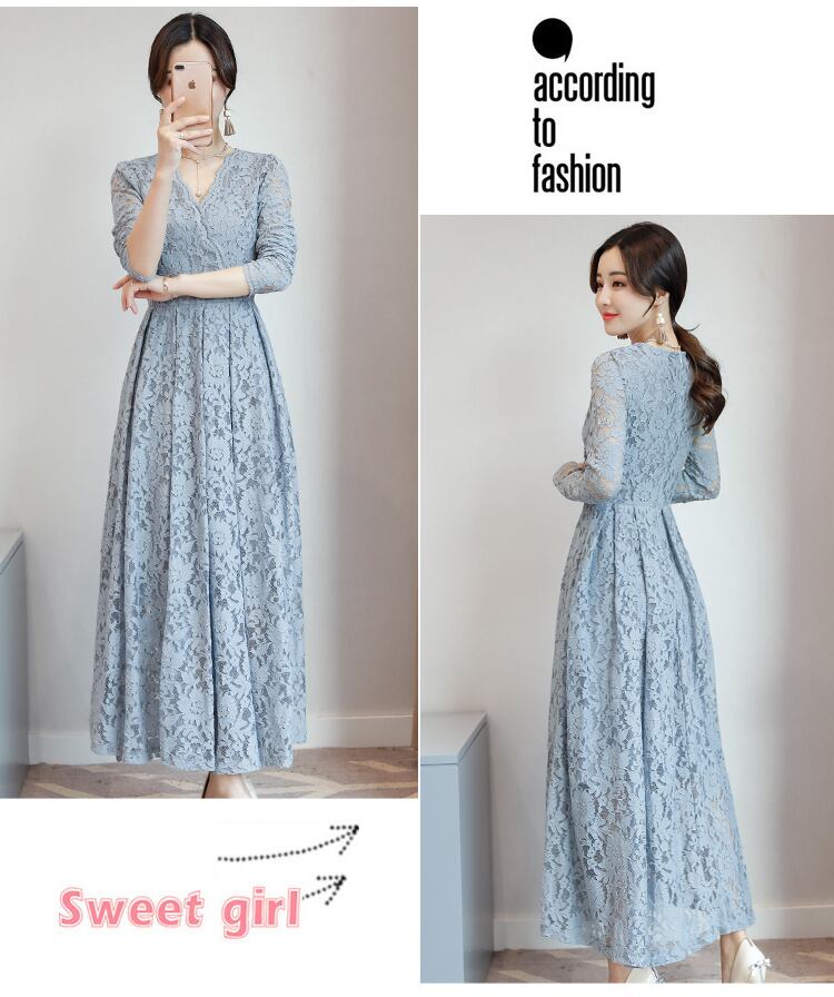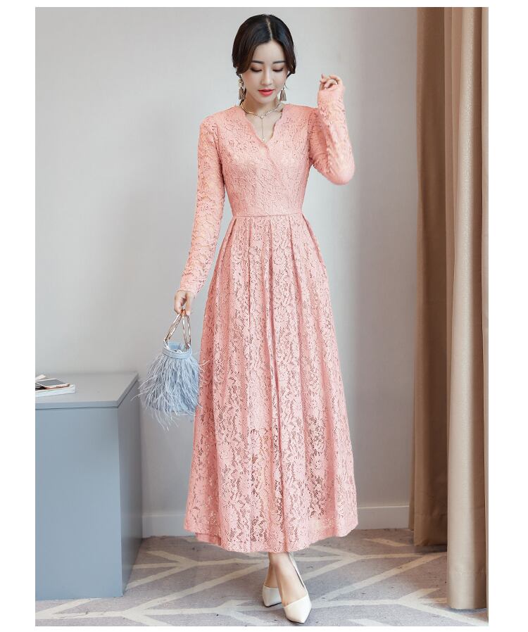 X-10131 ロング丈ドレス レース 長袖 シースルー カラーバリエーション Vネック マキシ丈 夏 パーティー 結婚式 お呼ばれ 上品 エレガント 大人 大人可愛い