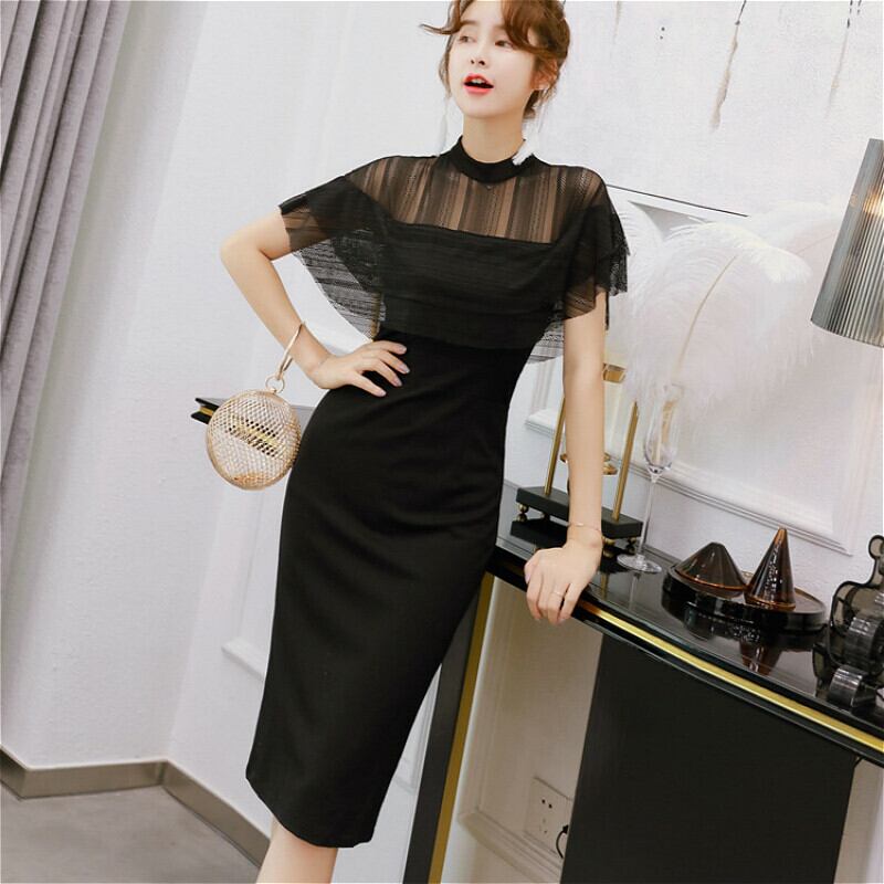 X-10153 タイト スリット ケープ ひざ丈 フレアスリーブ レース ハイネック 夏 パーティー お呼ばれ 結婚式 上品 エレガント 大人可愛い