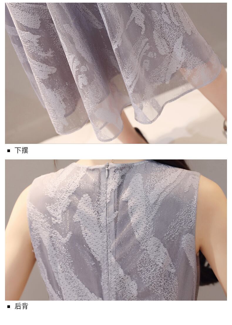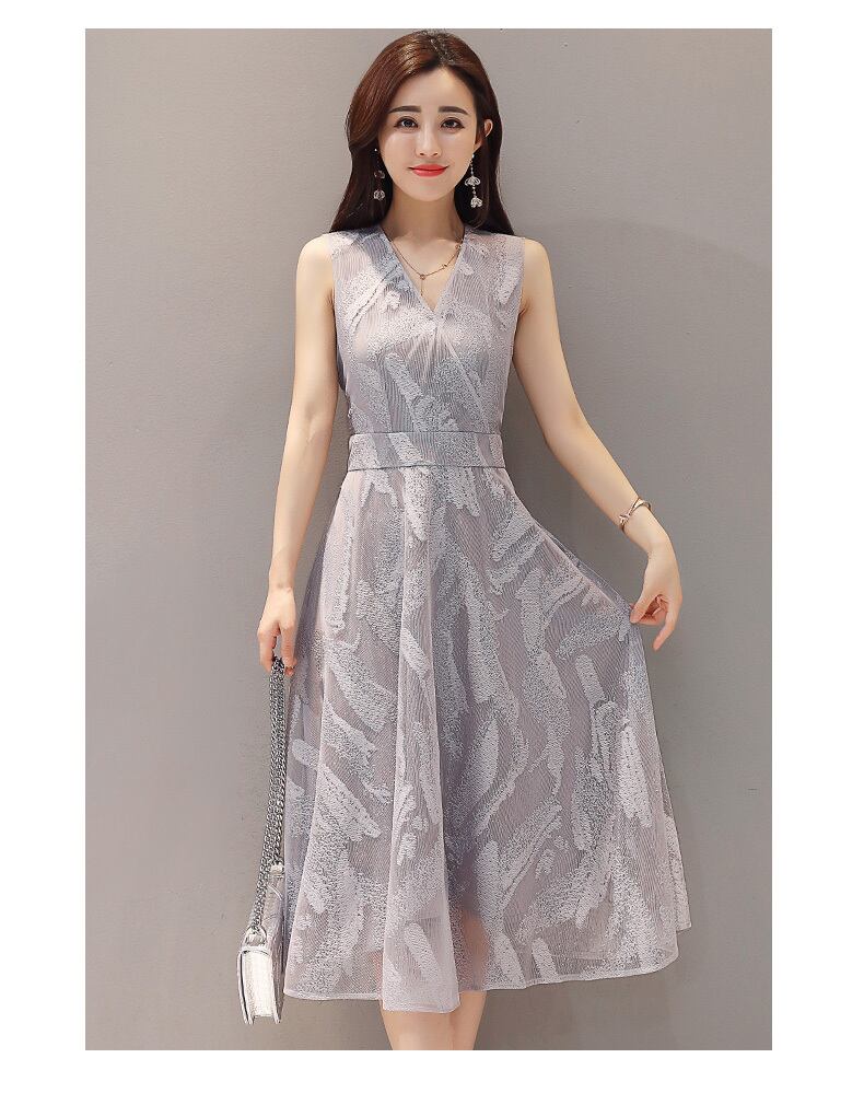 X-10159 シフォン ミディアム丈ドレス ノースリーブ フレア Vネック 夏 パーティー お呼ばれ 結婚式 上品 エレガント 大人可愛い