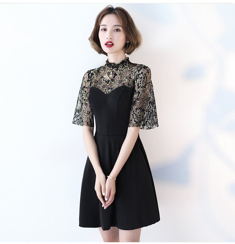 X-10167 レース 花柄 ボタニカルミニ丈 シースルーフリル ボタニカル フレア 夏 パーティー 5分袖 ハイネック お呼ばれ 上品 エレガント 大人可愛い