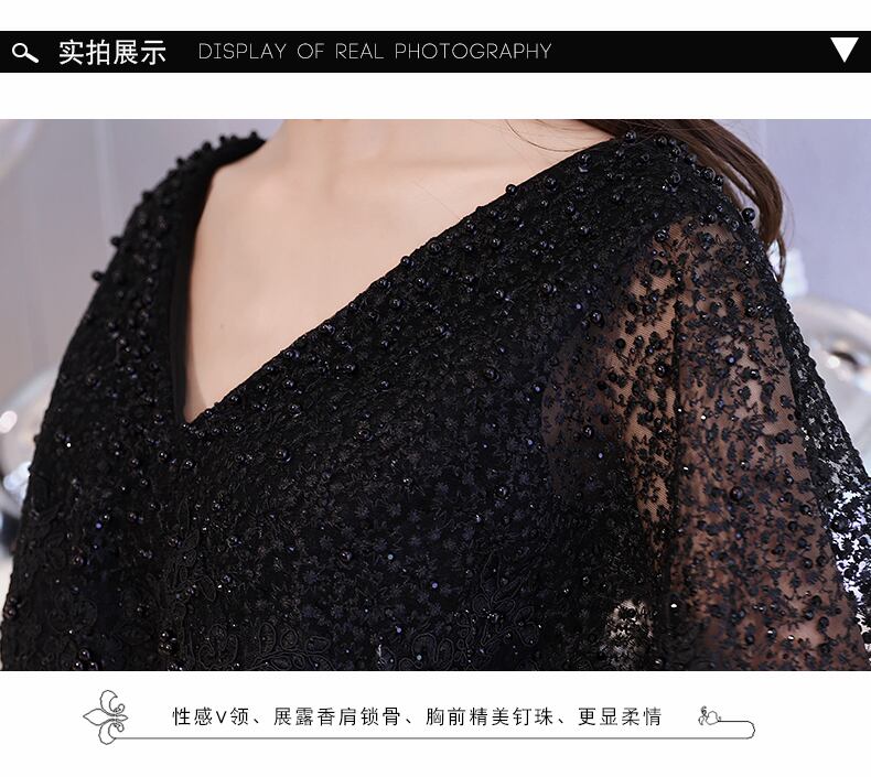 X-10191 マキシ丈 ブラック ビジューロング丈 フレアスリーブ 華やか フレア レース フリル 5分袖 結婚式 夏 パーティー お呼ばれ 上品 エレガント 大人可愛い