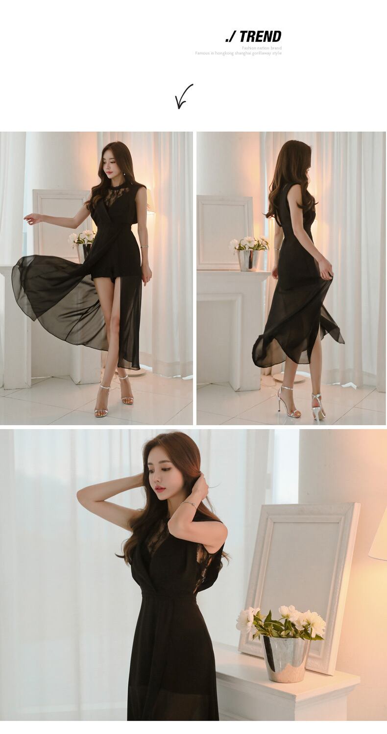 X-10193 シフォン シースルー セクシー ショートパンツ ブラック スリット レース ロング丈 ノースリーブ 夏 チュール 結婚式 パーティー お呼ばれ 上品 エレガント 大人可愛い