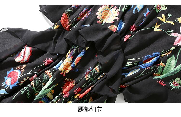 X-10195 リボン 花柄 ボタニカル フレア ロング丈 フリル 5分袖 フレアスリーブ Vネック 夏 結婚式 パーティー お呼ばれ 上品 エレガント 大人可愛い