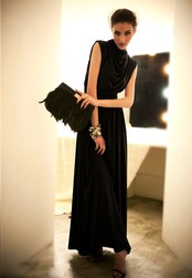 X-10196 マキシ丈 ドレープ カラーバリエーション ロング丈 フレア フリル ノースリーブ 結婚式 夏 パーティー お呼ばれ 上品 エレガント 大人