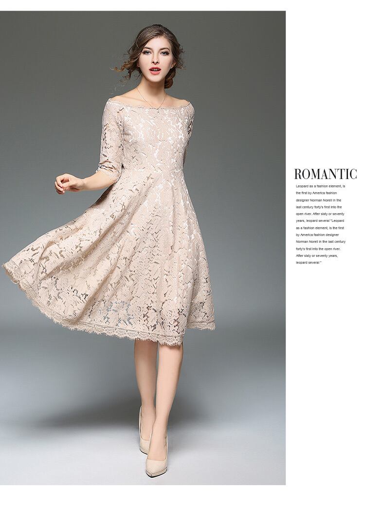X-10204 ミモレ丈 ひざ丈 レース フレア 5分袖 オフショルダー 2色 シースルー 夏 春 秋 パーティー お呼ばれ 結婚式 上品 エレガント 大人可愛い