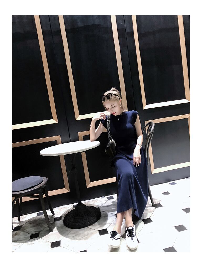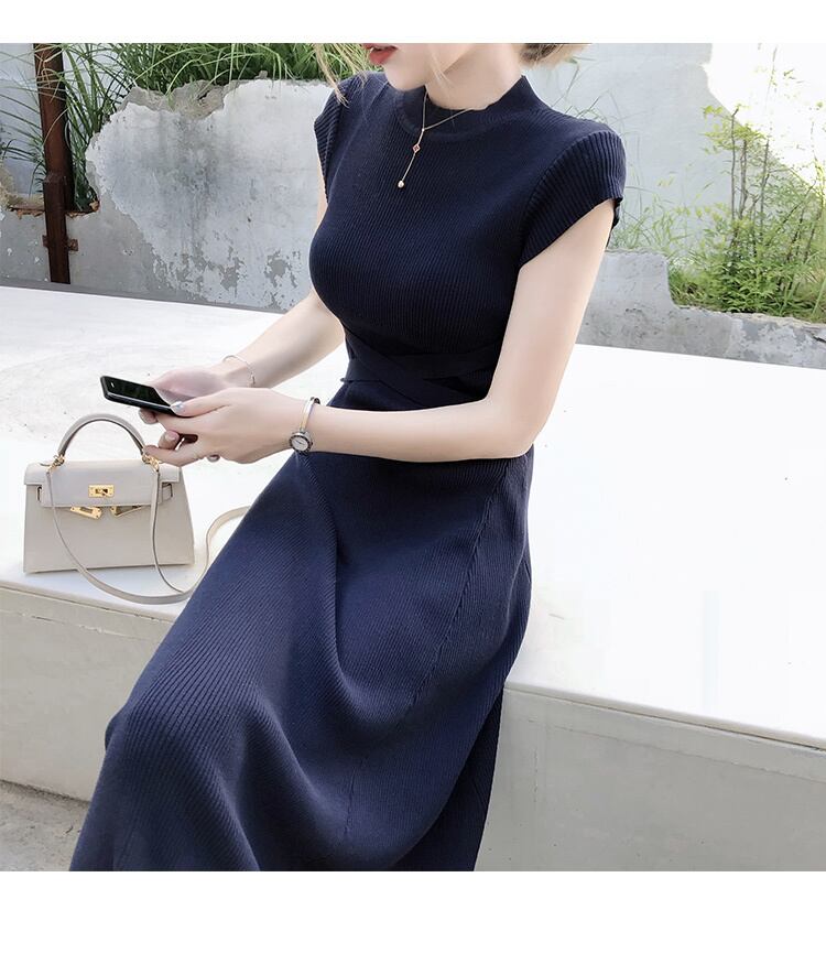X-10207 ロング丈 ミモレ丈 リボン フレンチスリーブ フレア シンプル ハイネック 春 夏 パーティー 結婚式 お呼ばれ 上品 エレガント 大人可愛い