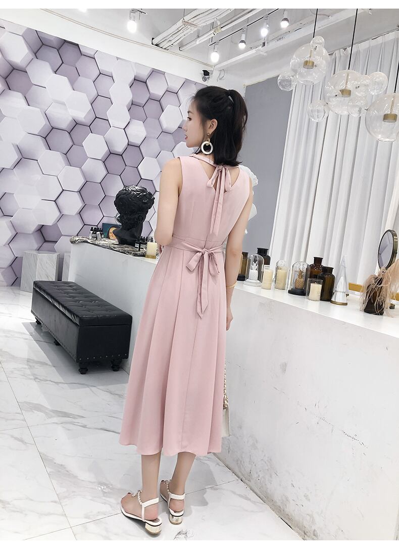 X-10212 ロング丈 シフォン リボン ノースリーブ フレア カラーバリエーション シンプル ホルターネック 夏 パーティー 結婚式 お呼ばれ 上品 エレガント 大人可愛い
