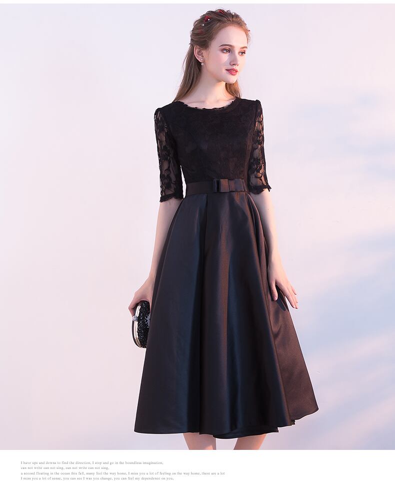 X-10222 ミモレ丈 華やか リボン レース Aライン ひざ丈 フレア 5分袖 ブラック 夏 秋 春 パーティー 結婚式 お呼ばれ 上品 エレガント 大人可愛い