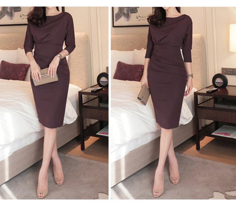 X-10224 ひざ丈 タイト ラウンドネック セクシー 7分袖 春 秋 パーティー お呼ばれ 結婚式 上品 エレガント 大人可愛い