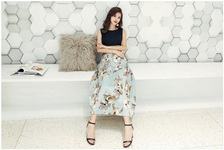 X-10272 フレア 花柄 ボタニカル ラウンドネック ロング丈 ノースリーブ 夏 春 パーティー 結婚式 お呼ばれ 上品 エレガント 大人 可愛い