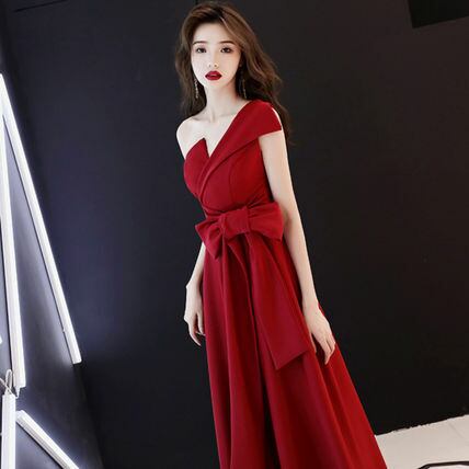 X-10277 フレア 2色 イブニングドレス 華やか ワンショルダー ウェディングドレス アシンメトリー マキシ丈 リボン ノースリーブ 夏 春 パーティー 結婚式 お呼ばれ 上品 エレガント 大人 可愛い