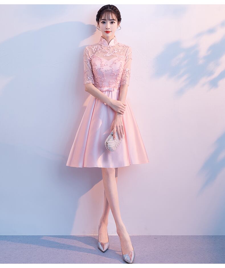 X-10289 フレア Aライン リボン ひざ丈 レース チャイナ テープリボン 花柄 ボタニカル ハイネック 5分袖 夏 春 パーティー 結婚式 お呼ばれ 上品 エレガント 大人 可愛い